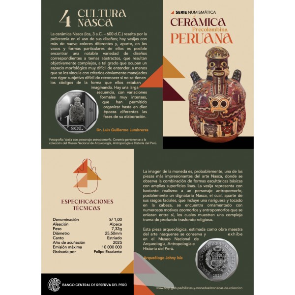 Reverso: Denominación y composición de ceramio alusivo a la cultura Nasca.
